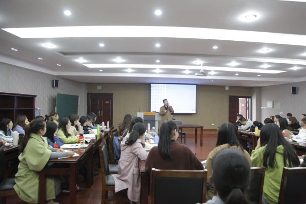 讲座伊始,孙晓晖老师就“如何上好一堂对学生有益的班会课”展开分享。她提出修身班会课的概念,解析其为两部分:担当法与故事法。担当法即担当总结,教师评价;故事法即故事讲述,教师引领。孙老师强调采用担当法能让学生通过班会课学习自我管理,实现良好习惯的自我养成。而故事法则为教师通过形象生动的事例讲述,让学生深入故事其中,从而正确引导学生。此外,孙晓晖老师幽默风趣、绘声绘色的授课方式也让现场气氛持续活跃,在场学子纷纷鼓掌,不断记录。