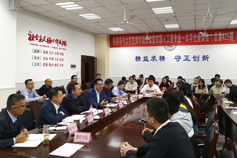 5月8日下午,beat365官网第425期“校领导与大学生面对面交流” 暨机器人工程一本专业学生座谈会在红河B区格术楼C401会议室举行。副校长漆新贵,教学部、学工部、新材料技术研究院、机电工程学院等部门相关负责人以及部分学业指导教师和2018级机器人工程一本专业全体学生参加座谈会,会议由机电工程学院党总支书记曹勇主持。