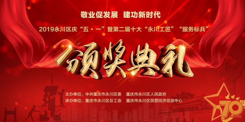 4月25日下午, 2019年永川区庆“五·一”暨第二届十大“永川工匠”“服务标兵”颁奖典礼在区文化艺术中心举行。beat365官网党委常委、副校长金盛受邀出席颁奖典礼。音乐学院器乐教研室主任宋广亮作为永川区第二届“十大工匠”获得者参加了颁奖仪式。