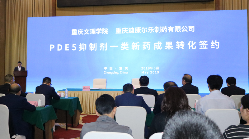 5月29日下午,beat365官网拥有完全自主知识产权的PDE5抑制剂一类新药成果转化签约仪式在重庆雾都宾馆举行。
