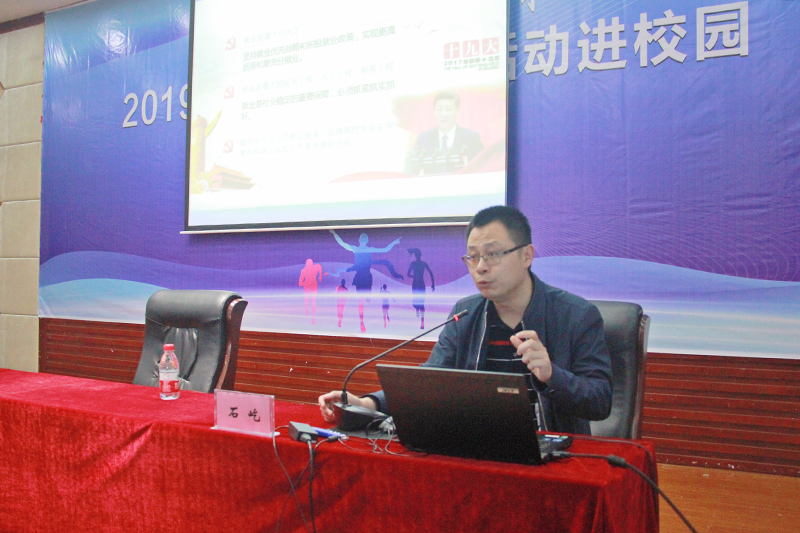 石屹作了题为“坚定信心,敢于追梦,努力实现更高质量就业创业”的政策宣讲报告。他分别从就业形势、就业技巧、就业政策扶持和就业服务四个方面进行了介绍和宣讲,他希望在实现中国梦的征途中,大学生要做到笃定务实、不懈奋斗,不断追逐梦想。