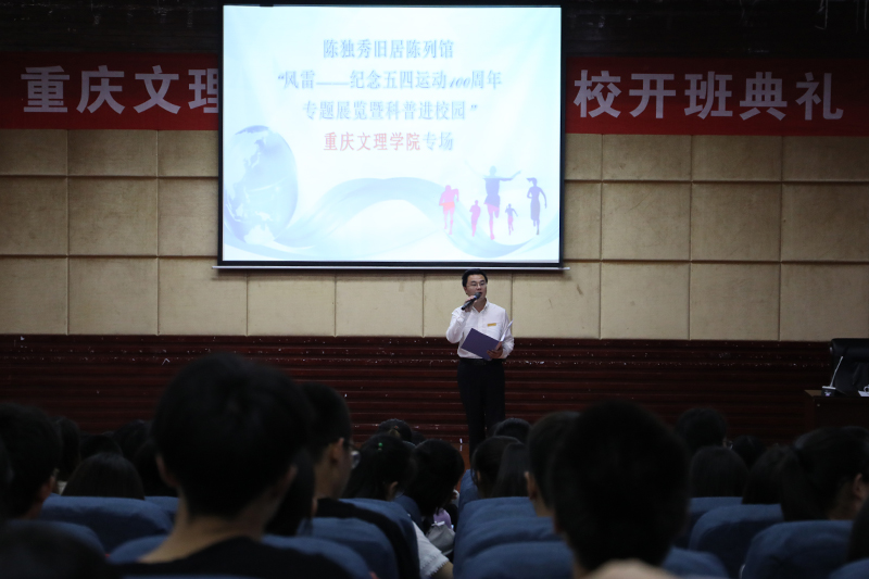 为学习贯彻习近平总书记在纪念五四运动100周年上的重要讲话精神, 6月1日,校团委邀请了重庆市江津区陈独秀旧居陈列馆到校为1300余名团员青年带来了科普讲堂和《风雷——纪念五四运动100周年》专题展览。