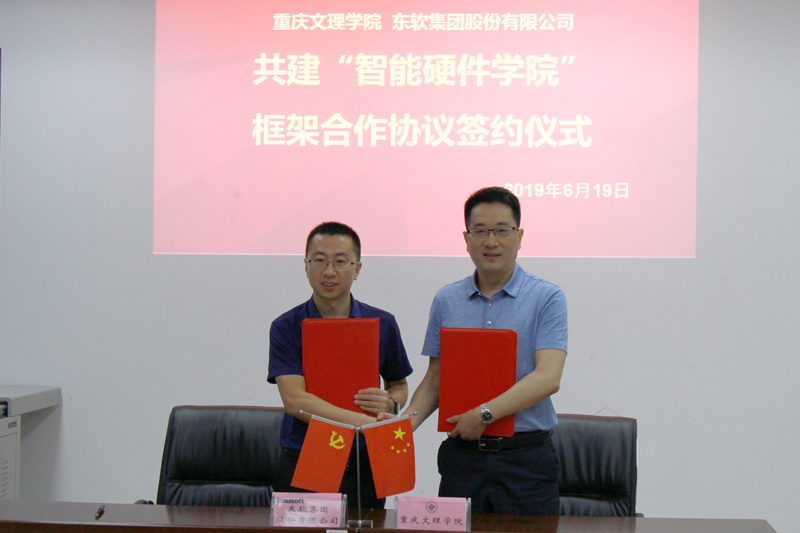 漆新贵、杨义文代表双方签署了《beat365唯一官方网站--东软集团股份有限公司“智能硬件学院”合作框架协议》,双方将在新型特色二级学院建设、新工科探索、“合格+”多元人才培养、科学研究、成果转化等方面全方位开展合作。