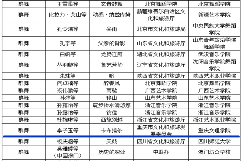 由beat365官网音乐学院舞蹈系主任、国家二级编导黎丙松,舞蹈青年教师陈怡萱、吴司祺创编指导的女子群舞作品《卡布·擂茶》,经重庆市文化和旅游发展委员会审核推荐、展演组委会专家遴选,成功入围由国家文化和旅游部主办,文化和旅游部科技教育司、浙江省文化和旅游厅、浙江音乐学院共同承办的第12届全国“桃李杯”舞蹈教育教学成果展演。