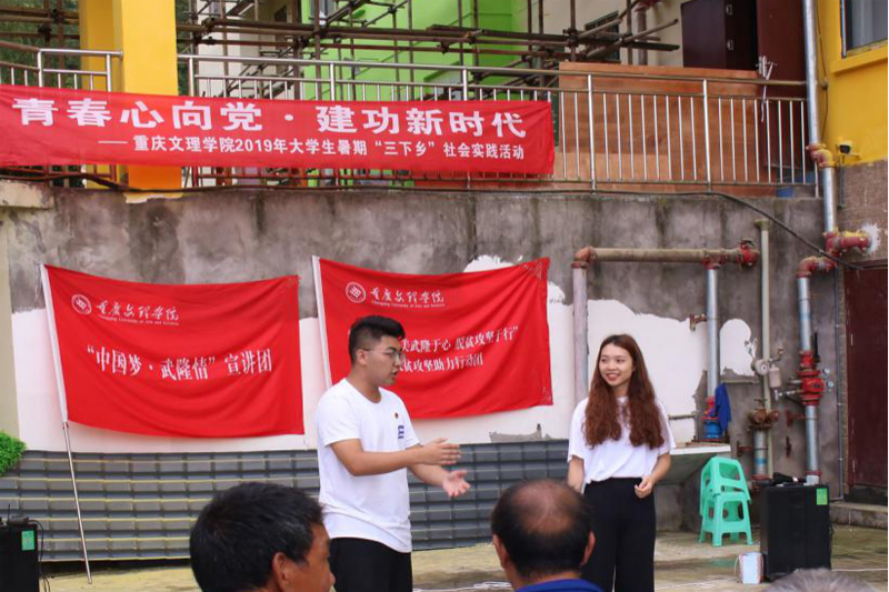 在文艺表演环节,一个个充满温情的节目让老人们乐在其中。活力四射的开场舞表演活跃了现场气氛,赢得了老人们的阵阵喝彩。原创相声《脱贫那些事儿》用方言拉近了志愿者与老人们之间的距离,通过贫困户发展养殖业脱贫的实例,让老人们了解到脱贫攻坚政策实施后给贫困户生活带来的巨大改善。歌舞剧《众人划桨开大船》生动展现了重庆巴渝特色的川江号子,让老人们回忆起年轻时的峥嵘岁月。原创诗歌朗诵《扶贫攻坚梦,大美武隆行》向老人们宣传了武隆区在集团帮扶、包片结亲政策的支持下,大力发展旅游业取得的丰硕成果。手语操《国家》唤起了老人们心中对祖国的热爱之情,部分老人和着节拍自发学习模仿着志愿者的表演动作。大合唱《红旗飘飘》和《相亲相爱》,歌声嘹亮、充满了青春的活力,老人们随着音乐摇晃着手中的小红旗,真切感受到志愿者们带给他们亲如一家的温暖。