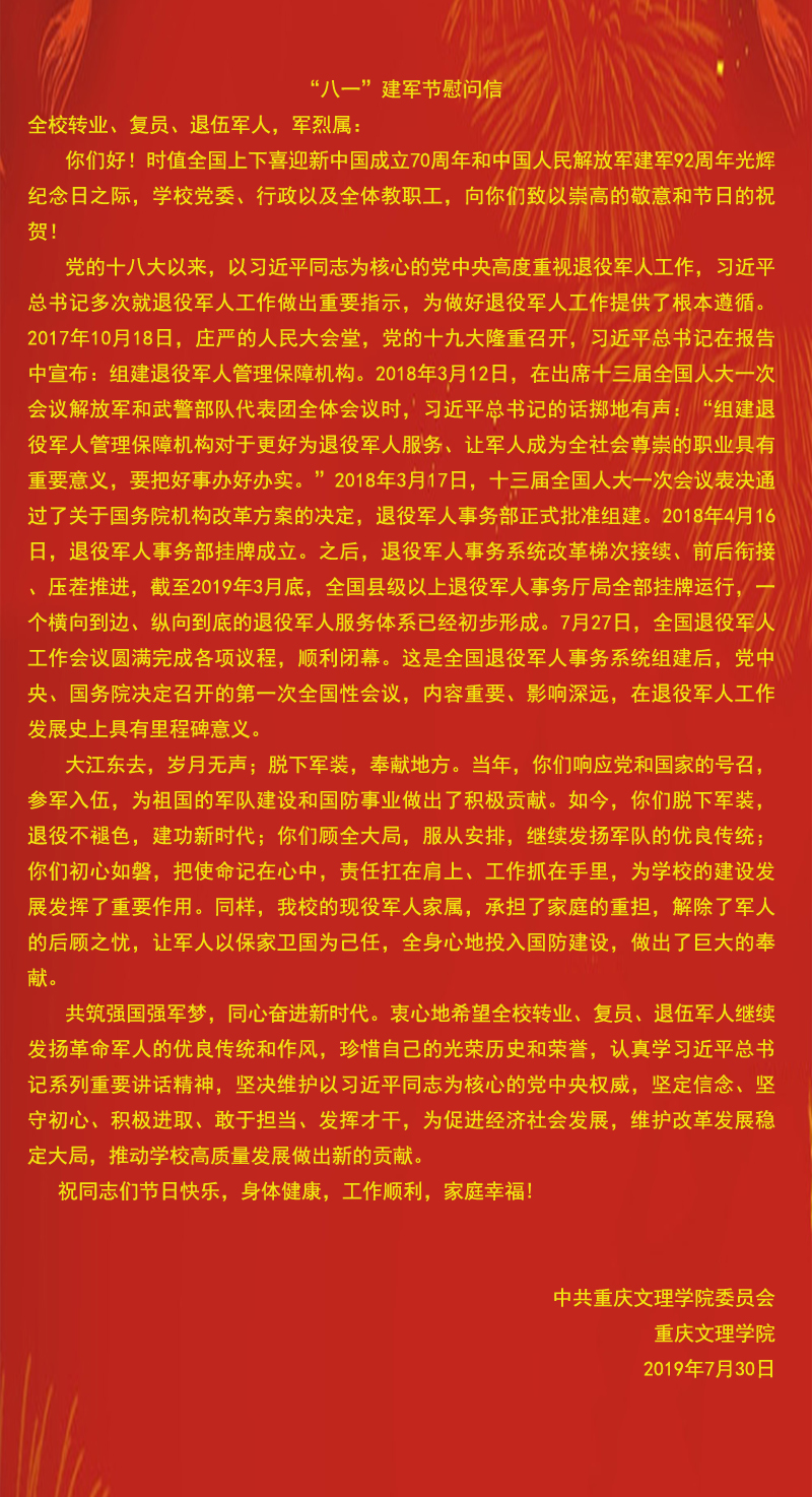 “八一”建军节慰问信