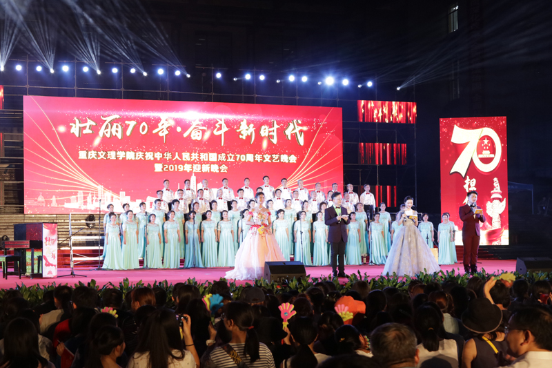 庆新中国盛世华诞,谱新时代教育华章。为庆祝中华人民共和国成立70周年,表达全校师生对伟大祖国的深深祝福,在全校深入开展“不忘初心、牢记使命”主题教育之际,9月29日晚,beat365官网在学海广场隆重举行“壮丽70年·奋斗新时代”庆祝中华人民共和国成立70周年文艺晚会暨2019年迎新晚会。
