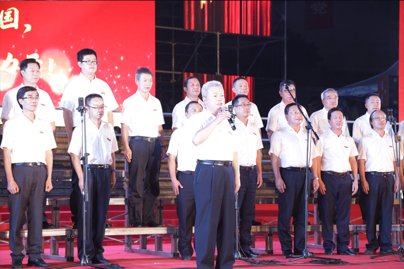 “历史证明,只有中国共产党才能救中国,只有中国共产党才能发展中国,只有中国共产党才能强盛中国。中国共产党人,励精图治团结一心,引领新中国从站起来、富起来,走进了强起来的新时代。文理人团结务实,三次创业取得了前所未有的成就。全校师生上下一心,紧密团结,向申硕工作发起强有力的总攻,为建设高水平应用型大学的文理梦而努力奋斗!” 学校党委书记孙泽平、校长黄伟九带领全体校领导、党委委员、纪委委员带来了合唱《没有共产党就没有新中国》《团结就是力量》。在党委副书记兰刚的指挥下,台上台下全体领导、嘉宾、师生员工起身挥舞着鲜艳的五星红旗齐声歌唱,把晚会引向高潮。