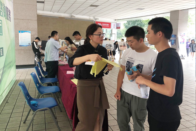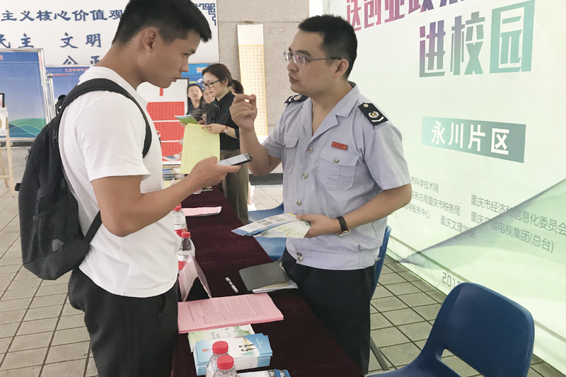此外,由市教委组织开展的“送创业政策、咨询服务进校园”活动也同期进行,市教委、区就业局、区税务局的相关工作人员为前来咨询的大学生进行解答。