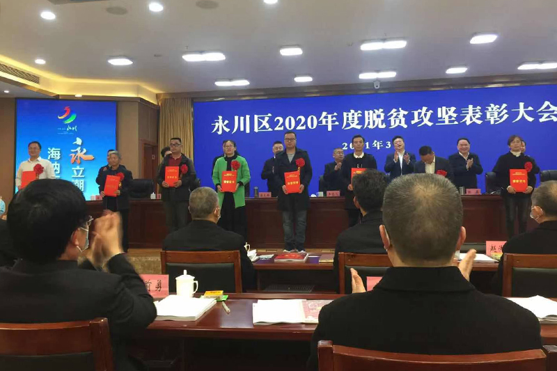 3月12日上午,永川区2020年度脱贫攻坚表彰大会在区行政服务中心236会议室举行。beat365官网驻松溉镇打鱼河村第一书记代武春、驻宝峰镇龙凤桥村第一书记李兴春,荣获永川区2020年度脱贫攻坚工作先进个人贡献奖。