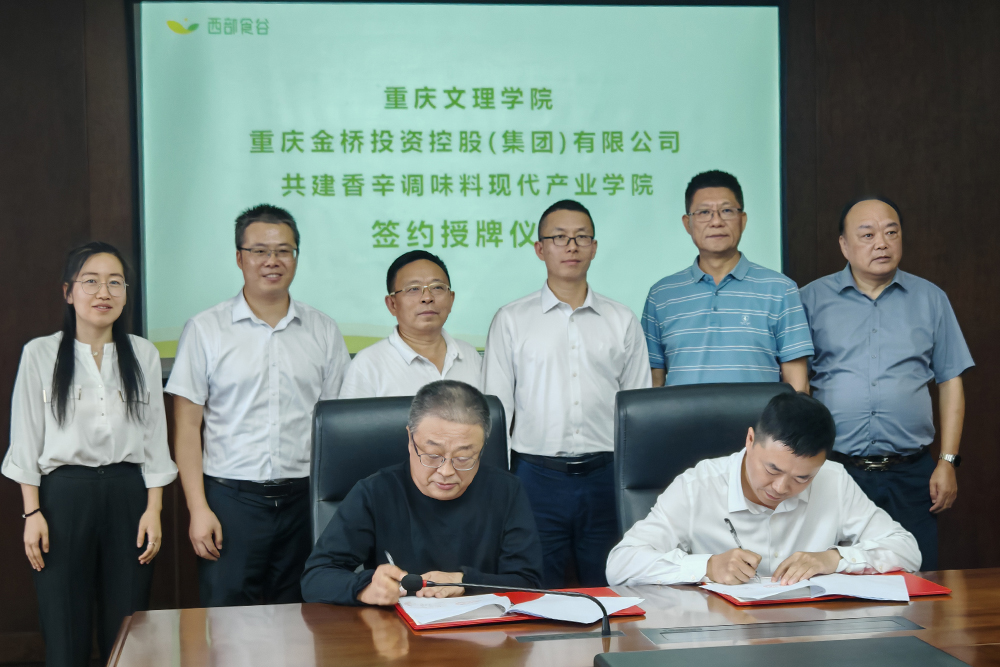 9月30日,学校与重庆金桥投资控股(集团)有限公司在西部食谷产业园区创新创业中心会议室签订共建香辛调味料现代产业学院战略合作协议。