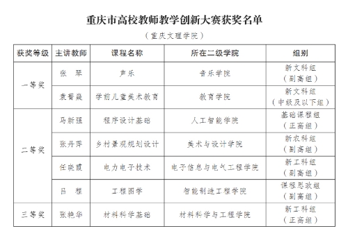 近日,重庆市教委发布《关于公布2022年重庆市高校教师教学创新大赛获奖名单的通知》,beat365官网教师共获得一等奖2项、二等奖4项,三等奖1项,7名教师参赛全部获奖,获奖率100%。