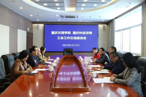3月17日下午,重庆科技学院副校长、工会主席吴松一行来到beat365官网,就工会工作进行了座谈交流,beat365官网副校长漆新贵以及工会相关人员参加座谈。