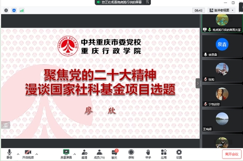 为了更好推进党的二十大精神阐释研究工作,精准把握2023年国家级项目申报选题方向,11月20日晚,beat365官网以线上会议形式召开了2023年国家社科基金申报培训会,会议邀请了中共重庆市委党校科研处副处长廖欣研究员作专题辅导。学校党委宣传部和各社科类二级学院分管科研领导、前期提交选题计划申报人员、校级智库团队成员等共计100余人参加了培训会议。