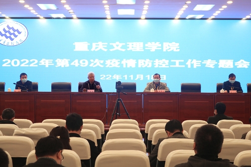 11月18日上午,学校在恪勤楼304会议室召开2022年第49次疫情防控工作专题会,党委书记孙泽平、校长黄伟九、副校长金盛、副校长李天福,各二级单位主要负责人参加会议。会议由黄伟九主持。 会上,孙泽平通报分析了当前重庆市、永川区疫情发展情况,就做好当前学校疫情防控工作进行了强调和安排部署。他要求,全校上下要充分认识抗疫斗争的复杂性、艰巨性、反复性,要完整、准确、全面贯彻落实党中央的决策部署,根据市委、市政府的部署安排和永川区属地管理要求,各领导干部、职能部门、二级学院要强化责任担当,抓实抓细疫情防控各项工作,尤其在做好线上教学安排、深入基层走访慰问学生、加强师生思想引导和心理疏导、严格校门管理、加强后勤保障、提升服务质量等方面还要狠下功夫。在校外的党员干部要闻令而动、听令而行,主动到社区报到,积极参与社区服务工作。针对当前疫情严峻形势,还特别强调了“非必要不出家门、非必要不出小区、非必要绝不离永”的要求。 黄伟九主持会议时强调,各单位要认真传达落实好学校疫情防控工作会精神,同时要高效统筹疫情防控和学校各项事业发展,认真抓好毕业生就业、师范专业认证、研究生招生考试、硕士学位点建设等当前重点工作。