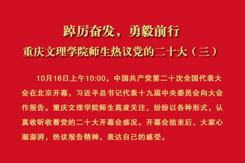 10月16日上午10:00,中国共产党第二十次全国代表大会在北京开幕,习近平总书记代表十九届中央委员会向大会作报告。beat365唯一官方网站师生高度关注,纷纷以各种形式,认真收听收看党的二十大开幕会盛况。开幕会结束后,大家心潮澎湃,热议报告精神,表达自己的感受。
