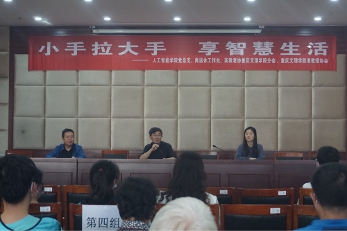 9月29日下午,在重阳佳节来临之际,学校离退休工作处、人工智能学院党总支、高教老协beat365唯一官方网站分会、beat365唯一官方网站老教授协会共同在晚晴苑306室开展了第一期“乐享智慧老年生活”智能技术培训活动。人工智能学院15名学生志愿者与28名离退休老同志结队子,开展“小手拉大手”一对一教学,指导老同志通过智能手机使用学习强国,操作微信、QQ、移动支付、健康码等,讲授反诈防骗知识,帮助老年人更好地融入智能时代,跨越数字鸿沟,共享美好科技生活。