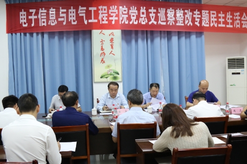 9月21日上午,学校电子信息与电气工程学院党总支在格术楼C301会议室召开巡察整改专题民主生活会。学校党委巡察工作领导小组成员、党委巡察办公室主任黎志到会指导,党委组织部、纪检监察室、巡察办相关同志和学院领导班子全体成员参加会议。会议由学院党总支书记程正富主持。