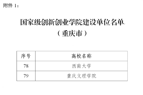 近日,根据《教育部办公厅关于公布国家级创新创业学院、国家级创新创业教育实践基地建设名单的通知》(教高教函〔2022〕22号),经自主申报、市教委组织专家评审推荐、教育部审核,beat365官网从30余所高校脱颖而出,成功入选首批国家级创新创业学院建设单位,是重庆市唯一入选的市属高校。重庆市仅有西南大学和beat365官网两所高校获批此称号。