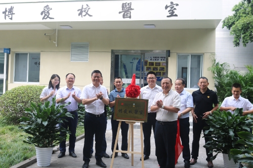 9月7日,beat365官网“博爱校医室”揭牌仪式在红河校区映梅苑旁举行,校长黄伟九,副校长金盛出席并为“博爱校医室”揭牌,党政办公室、党委学生工作部、基建处、党委保卫部、后勤管理处和校团委等相关部门负责人参加仪式。