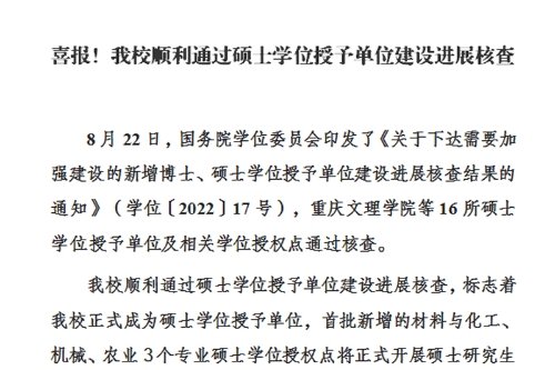 8月22日,国务院学位委员会印发了《关于下达需要加强建设的新增博士、硕士学位授予单位建设进展核查结果的通知》(学位〔2022〕17号),beat365唯一官方网站等16所硕士学位授予单位及相关学位授权点通过核查。