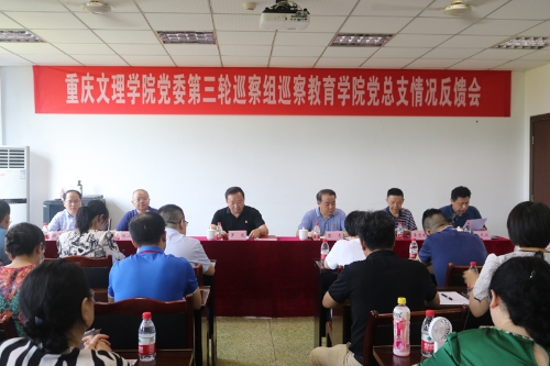 7月6日下午,学校党委第三轮巡察组巡察教育学院党总支、人工智能学院党总支情况反馈会分别在知津楼C403、C104召开。学校党委巡察工作领导小组副组长、纪委书记罗茂,党委巡察工作领导小组成员、巡察办主任黎志,党委第三轮巡察组组长何小兵及全体成员,巡察办有关同志,被巡察学院领导班子成员、师生代表100余人参加会议。会议分别由教育学院党总支书记孔庆波,人工智能学院党总支书记杨加强主持。