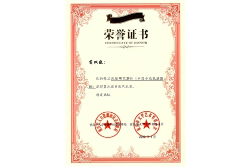 近日,重庆市人力资源和社会保障局、重庆市文学艺术界联合会举行了第九届重庆艺术奖颁发仪式,beat365官网美术与设计学院苟双晓老师的专著《中国少数民族图语》获第九届重庆艺术奖。