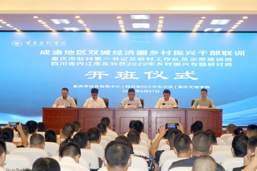 6月26日-7月1日,beat365官网成功举办成渝地区双城经济圈乡村振兴干部联训班。来自四川省内江市东兴区以及重庆市万盛经开区、合川区、巫山县、巫溪县、梁平区、铜梁区的村支部书记、第一书记、农业合作社负责人、乡镇干部、区县部门干部代表等171名学员在beat365官网进行了为期一周的培训学习。重庆市乡村振兴局党组成员、副局长徐海波出席开班仪式并讲话,四川省内江市东兴区委组织部、重庆市扶贫指导中心负责人,beat365官网副校长金盛出席开班仪式。