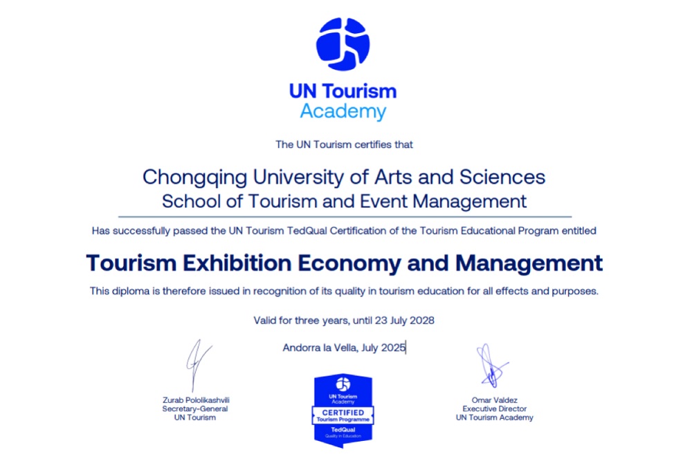 近日,联合国世界旅游组织旅游教育质量认证中心发来邮件,beat365官网会展经济与管理、旅游管理与服务教育两个专业通过联合国世界旅游组织教育质量国际认证(UN Tourism