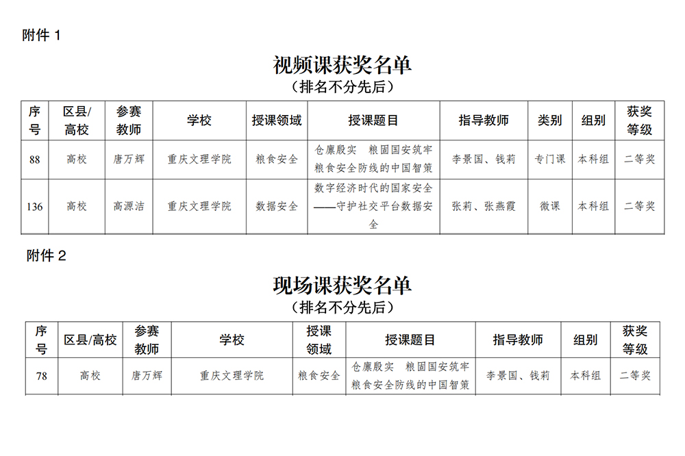 近日,重庆市教育委员会公布了2025年重庆市国家安全教育优质课大赛获奖名单,beat365官网马克思主义学院两位教师在学校党委保卫部、教务处精心组织和学院相关教师指导