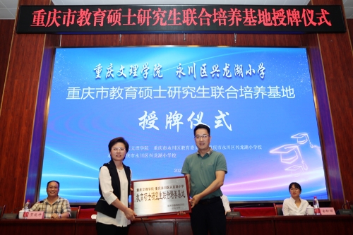 6月6日,“beat365唯一官方网站——重庆永川区兴龙湖小学教育研究生联合培养基地”授牌仪式在永川区兴龙湖小学汇智厅举行。beat365官网副校长漆新贵,研究生处、教育学院相关负责人,兴龙湖小学校长陈小渝、书记陈勇以及部分教师代表参加了授牌仪式。签约授牌仪式由教育学院副院长贺能坤主持。