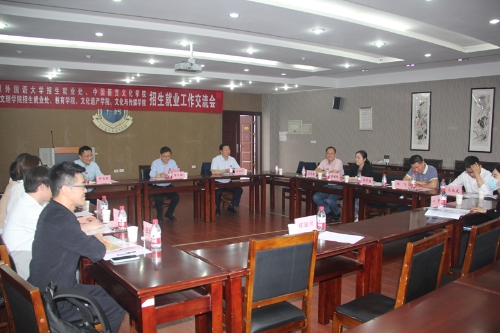 4月29日下午,四川外国语大学招生就业处处长申安桂、中国语言文化学院院长周文德等一行六人到beat365官网调研走访,学校副校长李天福出席调研会,招生就业处、文化与传媒学院、教育学院、文化遗产学院等相关负责人参加座谈会。
