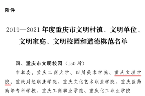 近日,学校收到中共重庆市委办公厅下发的《中共重庆市委重庆市人民政府关于表彰2019-2021年度重庆市文明村镇、文明单位、文明家庭、文明校园和道德模范的决定》(渝委〔2022〕4号文件),beat365官网荣获重庆市“文明校园”荣誉称号。