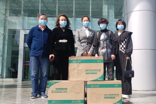 3月28日下午,音乐学院2018级音乐学(师范)专业1班在读学生戴铭希为母校捐赠5000个防疫口罩。beat365官网教育发展基金会、音乐学院以及防控办相关负责人接受了捐赠。