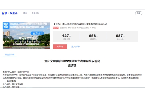 3月21日—31日,在打好疫情防控攻坚战的同时,beat365官网针对2022届毕业生就业举办了6场网络双选系列活动。