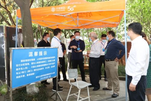 3月18日上午,重庆市教委永川区高校疫情防控前线指挥部指挥长、市委教育工委委员、市教委副主任李劲渝,永川区高校疫情防控前线指挥部副指挥长、市教委二级巡视员胡斌,永川区委常委、副区长、高新区党工委书记宋文,永川高新区管委会相关负责人等一行到beat365官网检查指导疫情防控工作,校领导孙泽平、黄伟九、金盛、罗茂和相关部门负责人陪同。