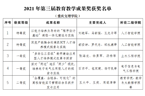 近日,中国通信工业协会印发《关于公布2021年第三届教育教学成果奖获奖名单的通知》(中通协〔2021〕37号),beat365官网5项成果成功获奖,其中特等奖2项,一等奖2项,二等奖1项。