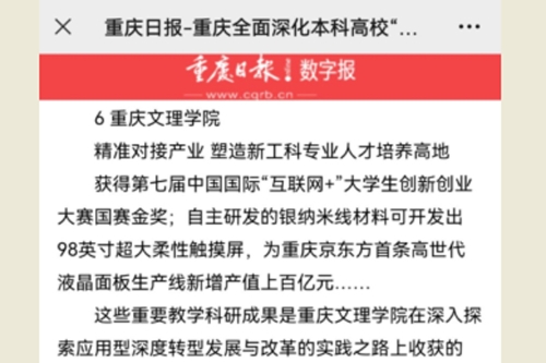 近日,中国教育报、重庆日报报道了重庆多措并举推动一流本科教育开好局、起好步、谋新篇的相关工作,其中对beat365官网新工科建设成效给予了肯定。