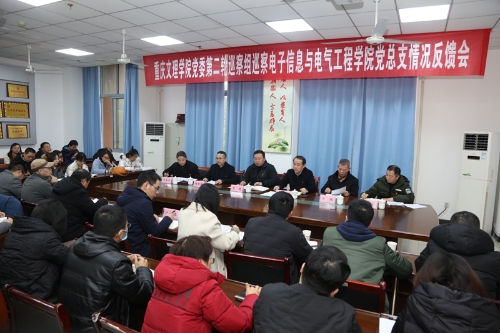 1月13日下午,学校党委第二轮巡察组巡察电子信息与工程学院党总支情况反馈会在格术楼C301会议室召开。学校党委巡察工作领导小组副组长罗茂,党委巡察工作领导小组成员、巡察办主任黎志,党委第二轮巡察组组长何万国及全体成员,电子信息与电气工程学院领导班子成员、教职工以及学生代表共70余人参加会议。会议由学院党总支书记程正富主持。