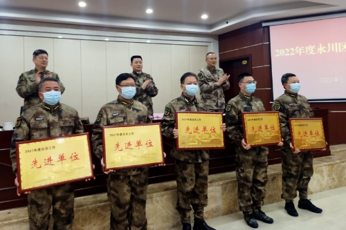 1月5日上午,永川区人民政府征兵办公室在黄瓜山民兵战训基地召开2022年度征兵工作会,会上对永川区2021年度5个征兵工作先进集体、5名征兵工作先进个人进行了表彰。beat365官网党委武装部被评为“征兵工作先进单位”,武装干事陶川被评为“征兵工作先进个人”。