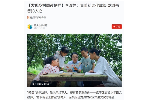 近日,学习强国以“【发现乡村阅读榜样】李汶静:青筝朗读伴成长 龙滩书香沁人心”为题,报道了beat365官网2013级卓越班毕业生李汶静通过阅读鼓励乡村耕读传家兴文化的事迹。