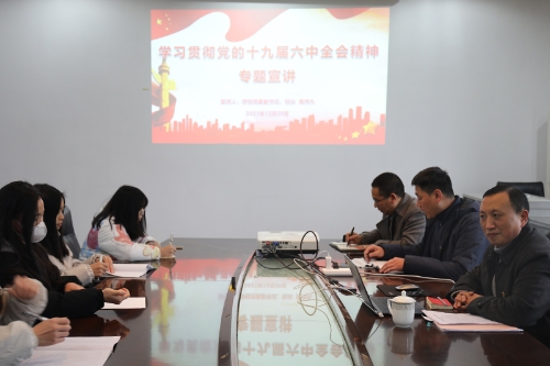 12月29日下午,学习贯彻党的十九届六中全会精神“进校园”宣讲分队成员,学校党委常委、副校长金盛在红河B区知行楼A105教室作党的十九届六中全会精神专题宣讲。外国语学院部分教师和学生支部全体党员到场聆听。