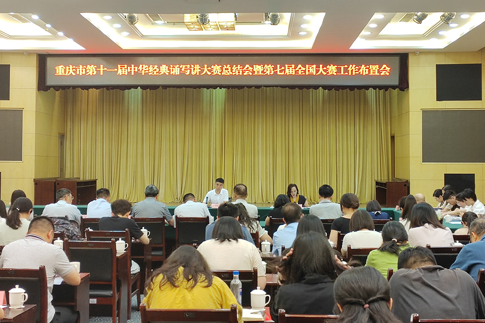 6月18日,市教委组织召开重庆市第十一届中华经典诵写讲大赛总结会暨全国第七届中华经典诵写讲大赛参赛工作布置会。会上,beat365官网作为承办单位就汉字书写类、师生篆刻类赛事