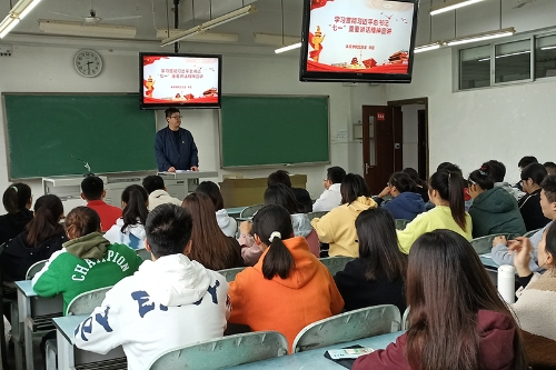 10月20日下午,体育学院党总支在知津楼A409举行习近平总书记“七一”重要讲话精神宣讲会。宣讲会由体育学院党总支书记李旻主讲,学院学生支部党员、发展对象和入党积极分子60余人参加会议。