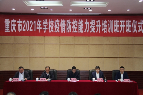 10月18日上午,重庆市2021年学校疫情防控能力提升培训班在beat365官网博文馆101会议室开班。教育部体育卫生与艺术教育司原巡视员、中国控制吸烟协会副会长廖文科,重庆市委教育工委委员、市教委副主任邓沁泉,beat365官网校长黄伟九、副校长金盛出席开班仪式。会议由市教委体卫艺处处长程翔宇主持。