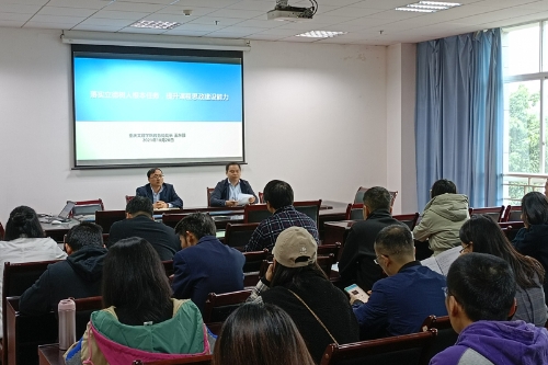 10月20日下午,学校基层教学组织课程思政建设工作推进会在恪勤楼221召开,全校教研室主任、教务处相关人员参加了会议。会议由教务处副处长丁武泉主持。