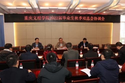 10月19日下午,学校2022届毕业生秋季双选会协调会在恪勤楼422召开。学校党委副书记、校长黄伟九,党委常委、副校长李天福,相关职能部门负责人,二级学院院长、就业工作分管负责人参加会议。会议由招生就业处处长何独明主持。