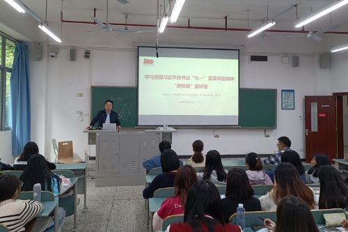 10月13日下午,外国语学院党总支在知行楼B103举行习近平总书记“七一”重要讲话精神“进校园”宣讲会。宣讲会由外国语学院党总支书记杜勇主讲,学院学生支部党员、学生入党积极分子和主要学生干部100余人参加会议。