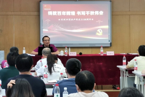 9月29日下午,市委教育工委宣讲分队成员、学校党委副书记、校长黄伟九在逸夫美术楼会议室宣讲了习近平总书记“七一”重要讲话精神,教育学院、美术与设计学院部分师生代表90余人参加了宣讲会。
