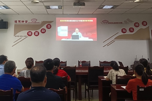 9月27日至29日,学校组织全体思政课教师在知津楼C205会议室集中在线参加由教育部教材局组织的高校思想政治理论课2021年版教材使用培训,100余名专兼职思政课教师全程参加了培训。学校副校长漆新贵,教务处等相关负责人到会观摩。培训会由马克思主义学院副院长胡守敏主持。